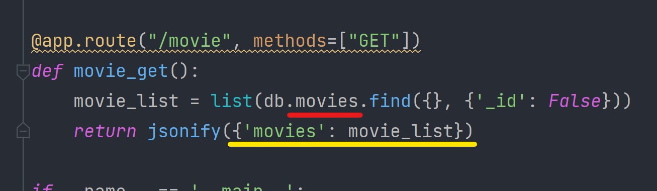 노란선: movies라는 키 값으로 movie_list를 받겠다.