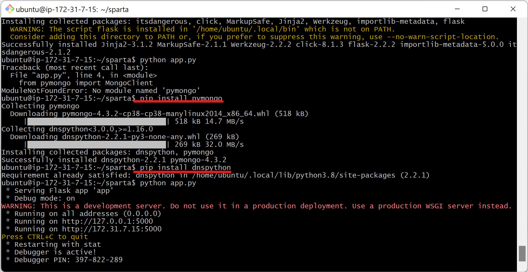 pip install flask dnspython pymongo //내가 인터프리터에 패키지를 깔았던것을 명령어로 한 것