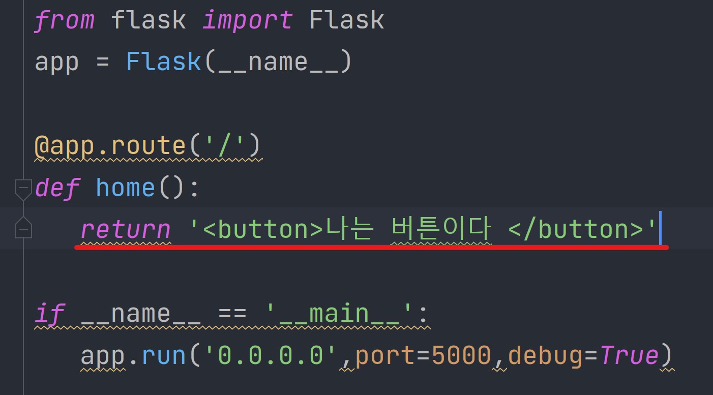 => 이렇게만 적고 '실행'해보면 서버가 실행된다. localhost:5000실행하면 글이 나옴