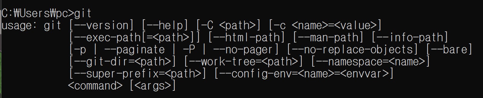 설치확인 : 명령프롬프트에 git이라고 적고 뭐가 많이 나오면 설치된거임!!👇👇