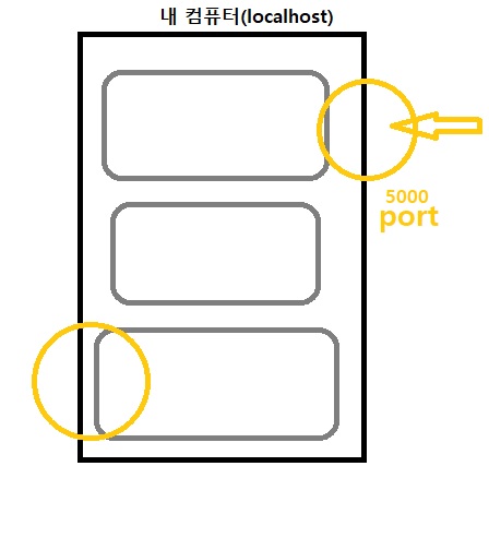 5000 = 포트 ※포트: 항구, 여기서는 서버로 들어갈 수 있는 문을 번호로 매겨놓은 것