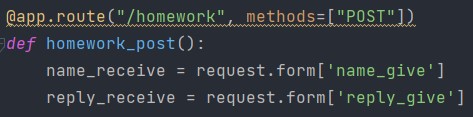 name_receive는 이제 파이썬에서의 파일 이름이고 ['name_give']는 변수의 이름이라고 생각하면 된다.