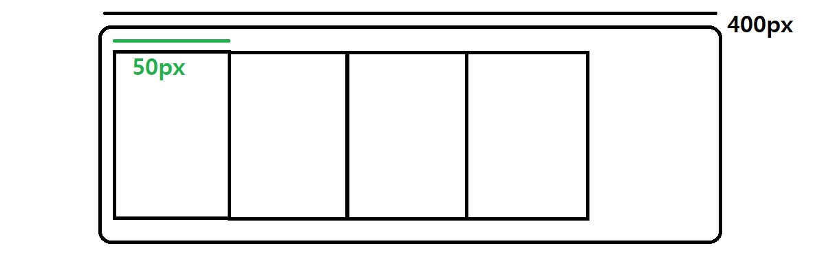 200px남은 거에서 이 속성들의 합을 구하면 4이므로 1=50px이 된다.