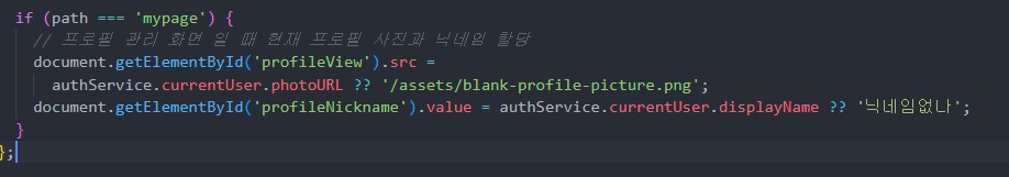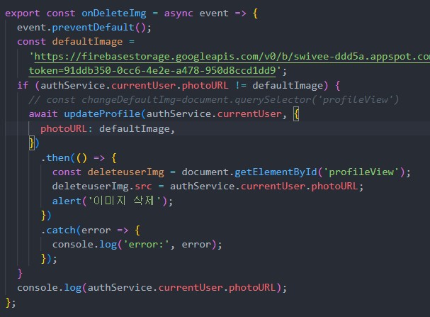 튜터님께서 then뒤에 조건을 달아보자고 하셔서 조건을 profileview라는 아이디 값을 가진 img에