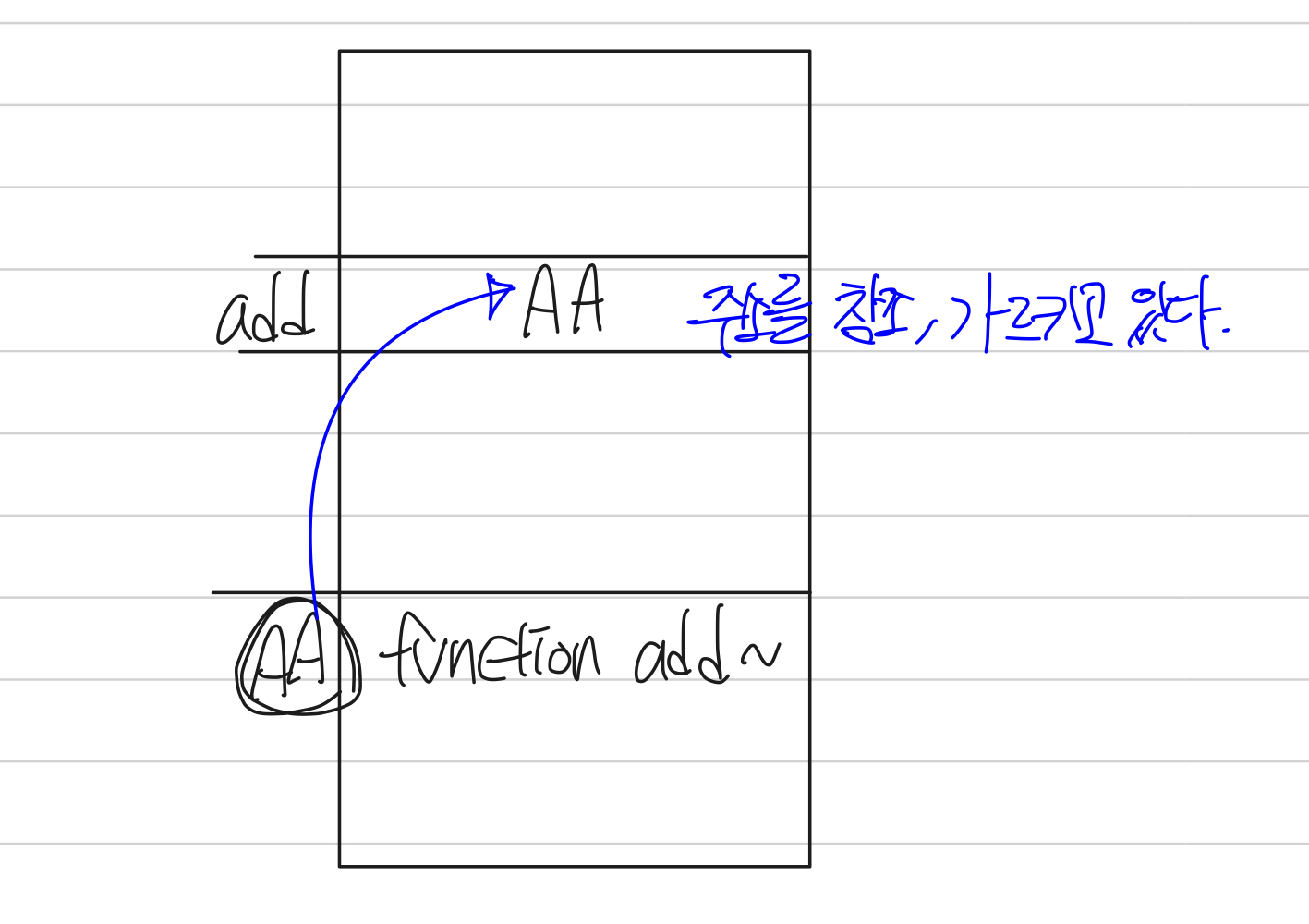 이렇게 있다고 하자. 그럼 저기서 add는 함수를 참조 하고 있는 것이다. 즉, 주소값을 가지고 있다고 생각하면 된다.