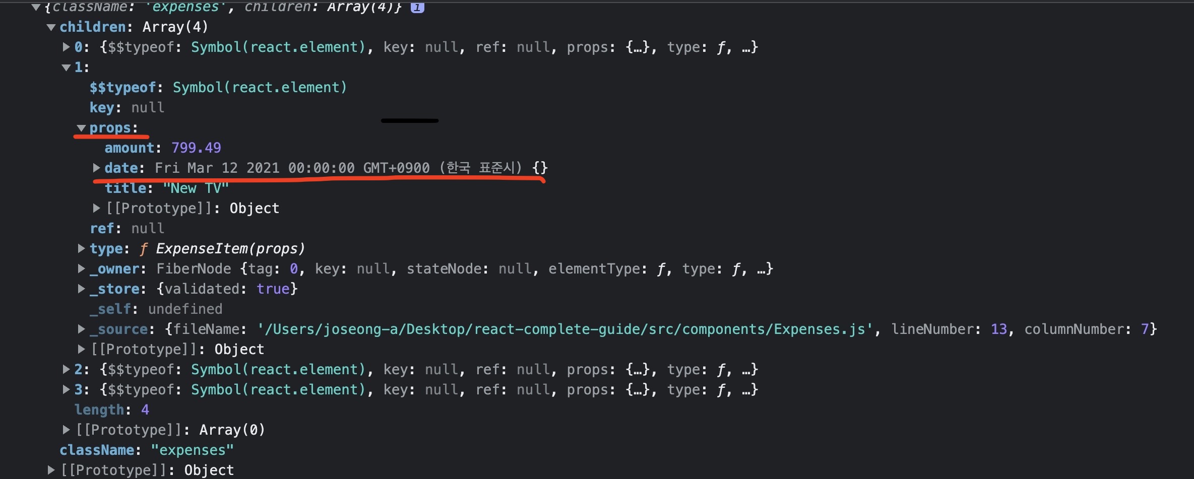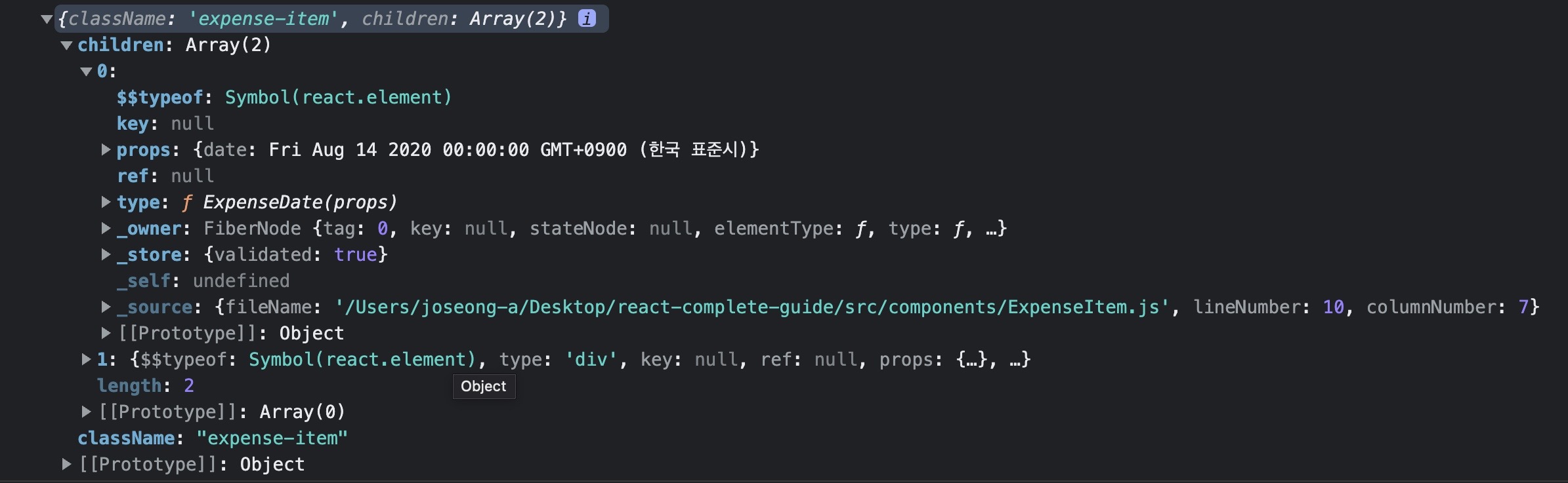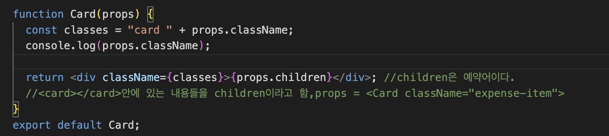 그러면 결국 className을 classes로 갖고 있는 태그는 className ={class, expense-item} 두 가지의 클래스를 가지고 있다.