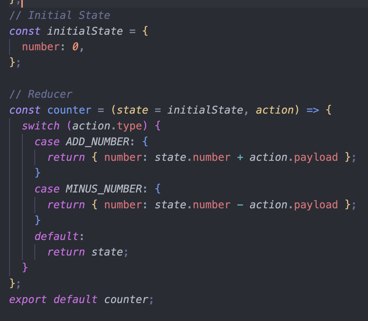 const counter = (state = initialState, action) => { //리듀서