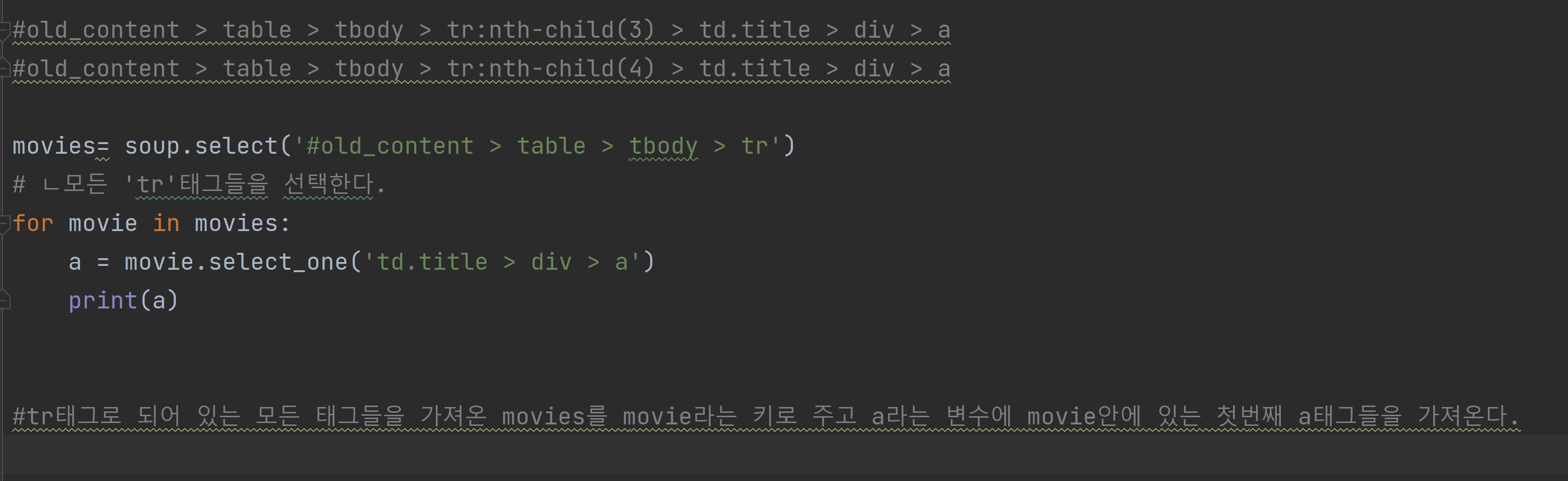 ('선택한다'라고 적어놨지만 실제는 tr태그들을 list형식으로 가져와라라는 뜻)