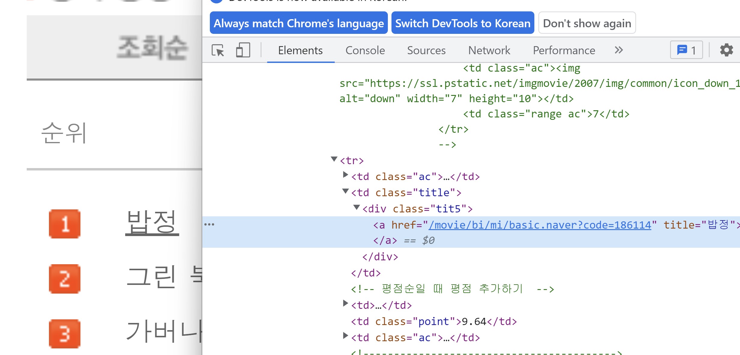 😊<a태그>를 가져오라고 요청했을때 잘 가져온게 보인다.